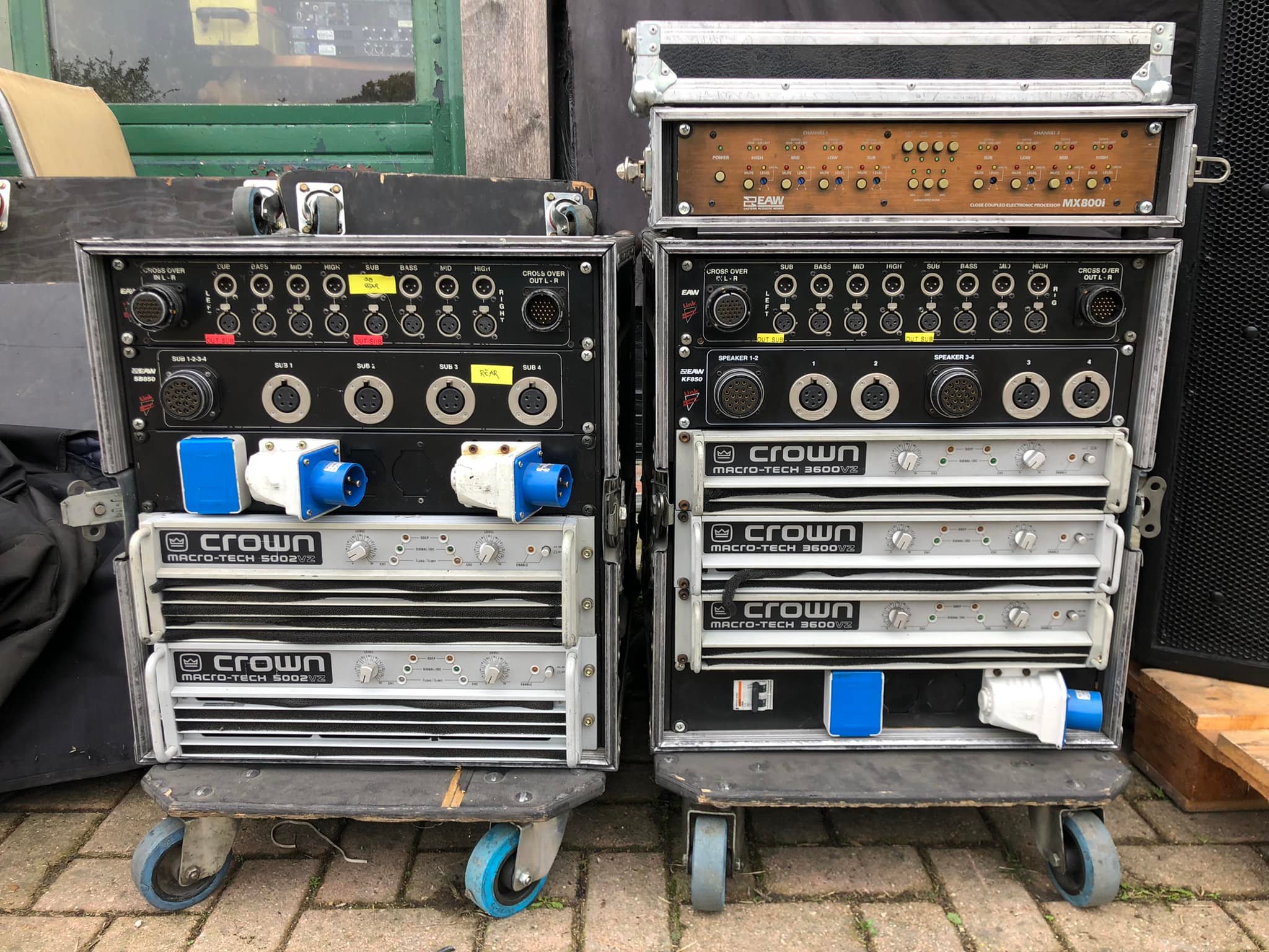 | Amplifiers | Crown Macro-Tech 3600 & VZ5002 (industry-standard reliability) |